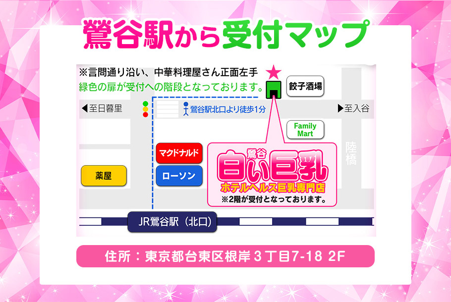 当店の受付所は鶯谷駅北口から歩いて1分の超近距離!