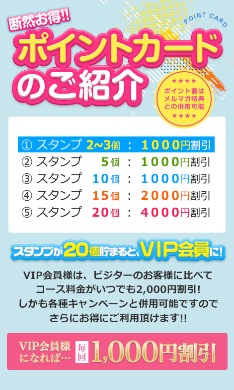 お客様のクレジットカード番号や、個人情報などは当店には一切通知されませんので「風俗店でクレジットカードを使うのは抵抗がある…」という方も安心してお使い頂けます。
